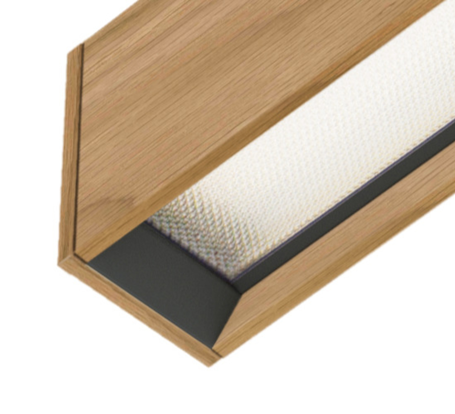Suspension, L 60, bois, noyer, LED, DALI, microprisme, 2700K, 4670 lm, L172cm, H6cm - Tunto
