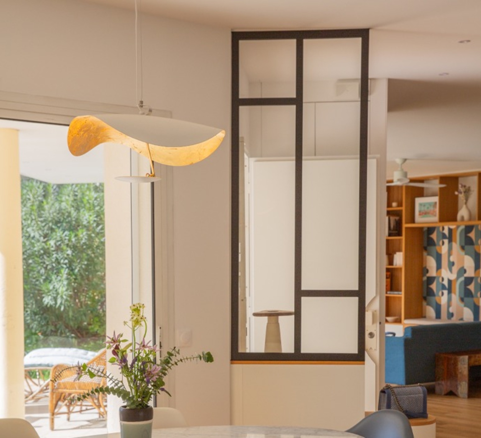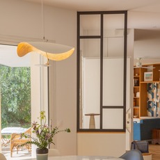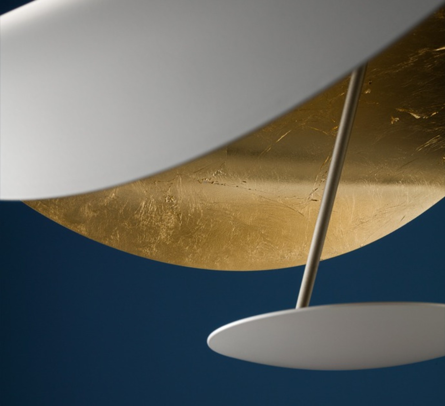 L’esthétique de la suspension Lederam Manta S1 se distingue par l’association harmonieuse de deux couleurs sophistiquées : le blanc et l'or. Ses disques organiques, aux finitions en feuille d’or et en aluminium, évoquent une légèreté aérienne tout en créant un éclairage indirect doux et enveloppant. Idéale pour sublimer un séjour, une salle à manger ou un bureau, elle s’intègre parfaitement dans des décors modernes ou plus classiques, où elle devient un véritable objet décoratif, à la fois fonctionnel et artistique. Le design sinueux et les lignes courbes de la suspension sont une invitation à l'élégance discrète, créant une atmosphère chaleureuse et intime.