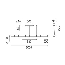 La suspension mesure 10cm de diamètre et 208,8cm de longueur.