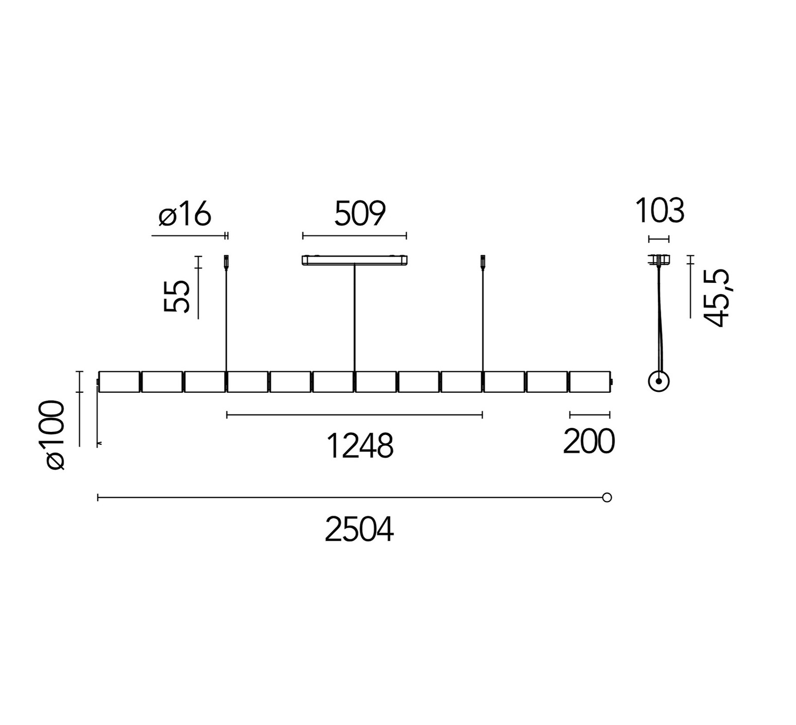 La suspension mesure 10cm de diamètre et 250,4cm de longueur.