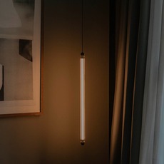 Ce luminaire met en avant une esthétique minimaliste et contemporaine, composée de deux éléments suspendus légèrement courbés qui jouent avec la gravité pour donner une impression de légèreté et de mouvement tout en habillant l’espace avec élégance.