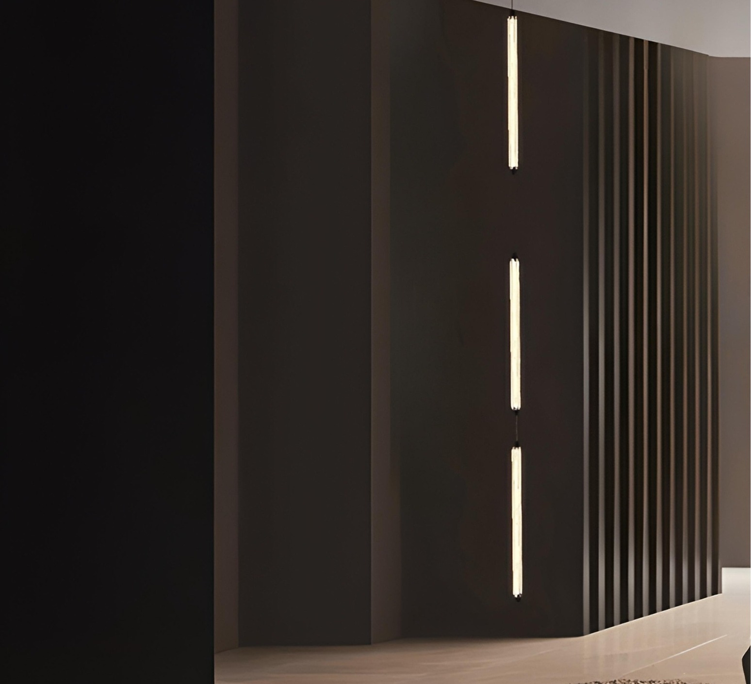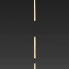 Ce luminaire met en avant une esthétique minimaliste et contemporaine, composée de trois éléments suspendus légèrement courbés qui jouent avec la gravité pour donner une impression de légèreté et de mouvement tout en habillant l’espace avec élégance.