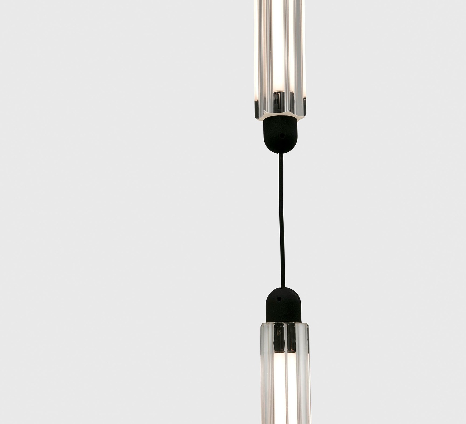 Cette suspension est parfaitement adaptée à des pièces de vie comme un salon, une salle à manger, une cuisine ou un bureau. Grâce à ses lignes épurées et à sa finition associant verre strié et éléments noirs mats, elle s’intègre facilement dans des décorations modernes ou contemporaines. La lumière LED intégrée est réglable en intensité via DALI, ce qui permet de moduler l’ambiance lumineuse selon l’usage et le moment de la journée.