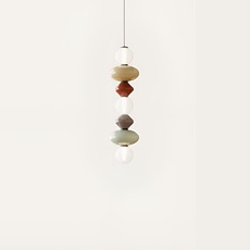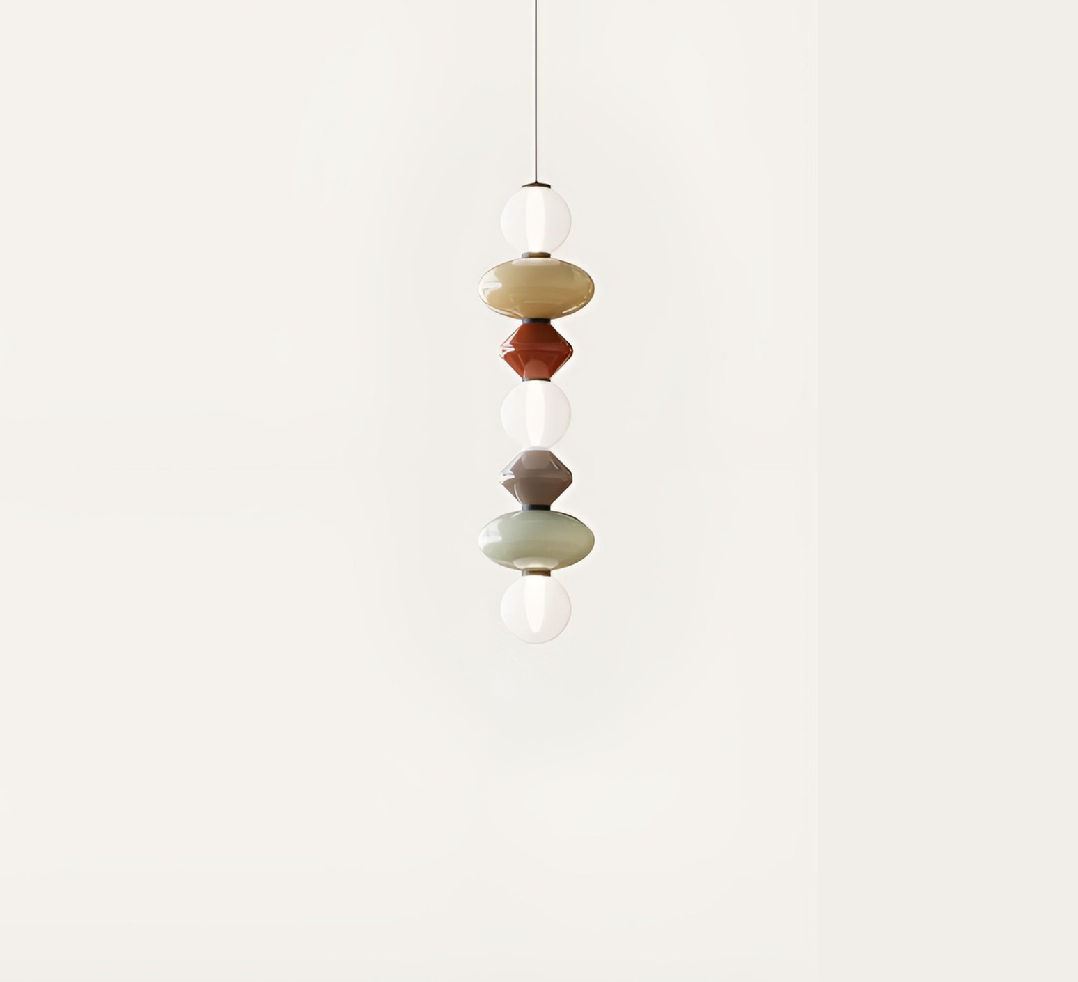 Alliant une structure en acier noir mat à des diffuseurs en verre opalin ou coloré selon palette, cette suspension évoque une lumière architecturale moderne, une ligne de lumière fluide qui structure visuellement l’espace tout en apportant une forte présence décorative.
