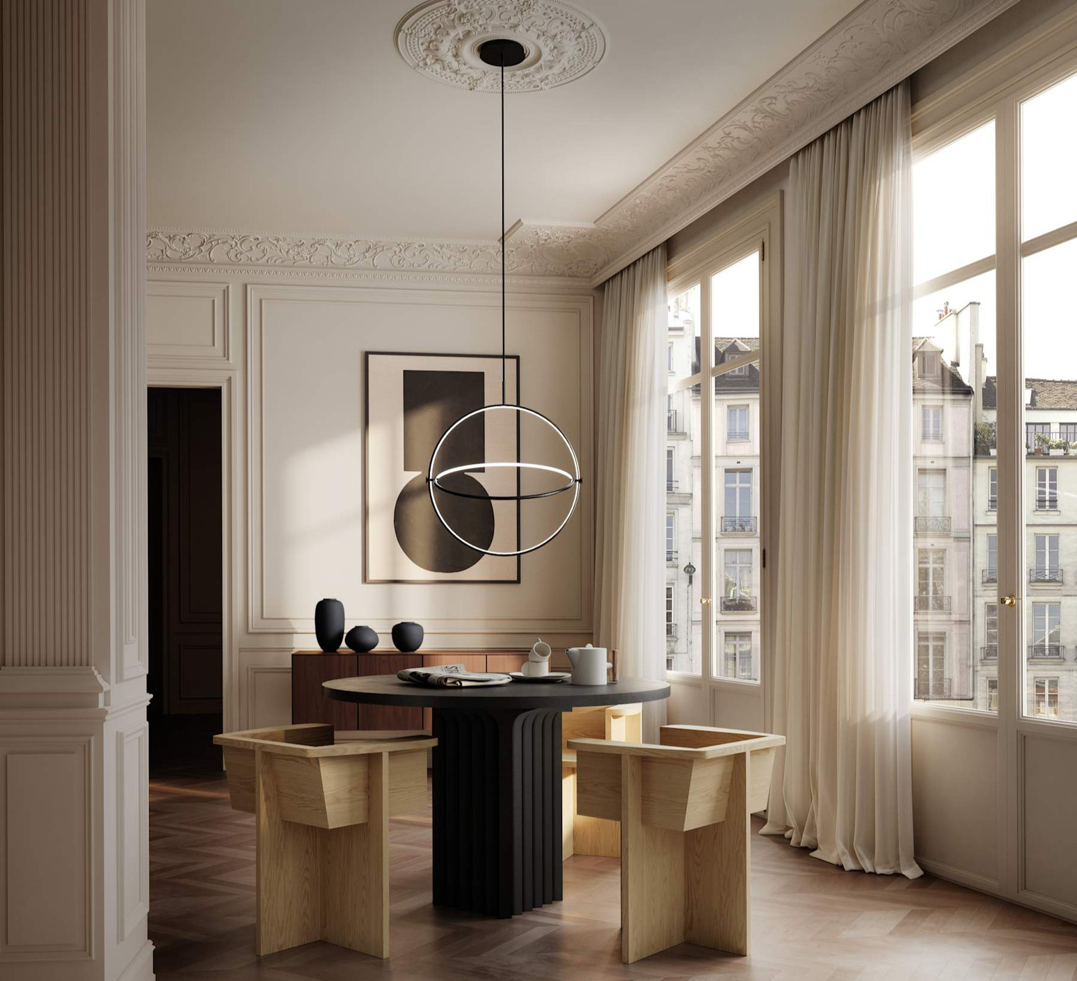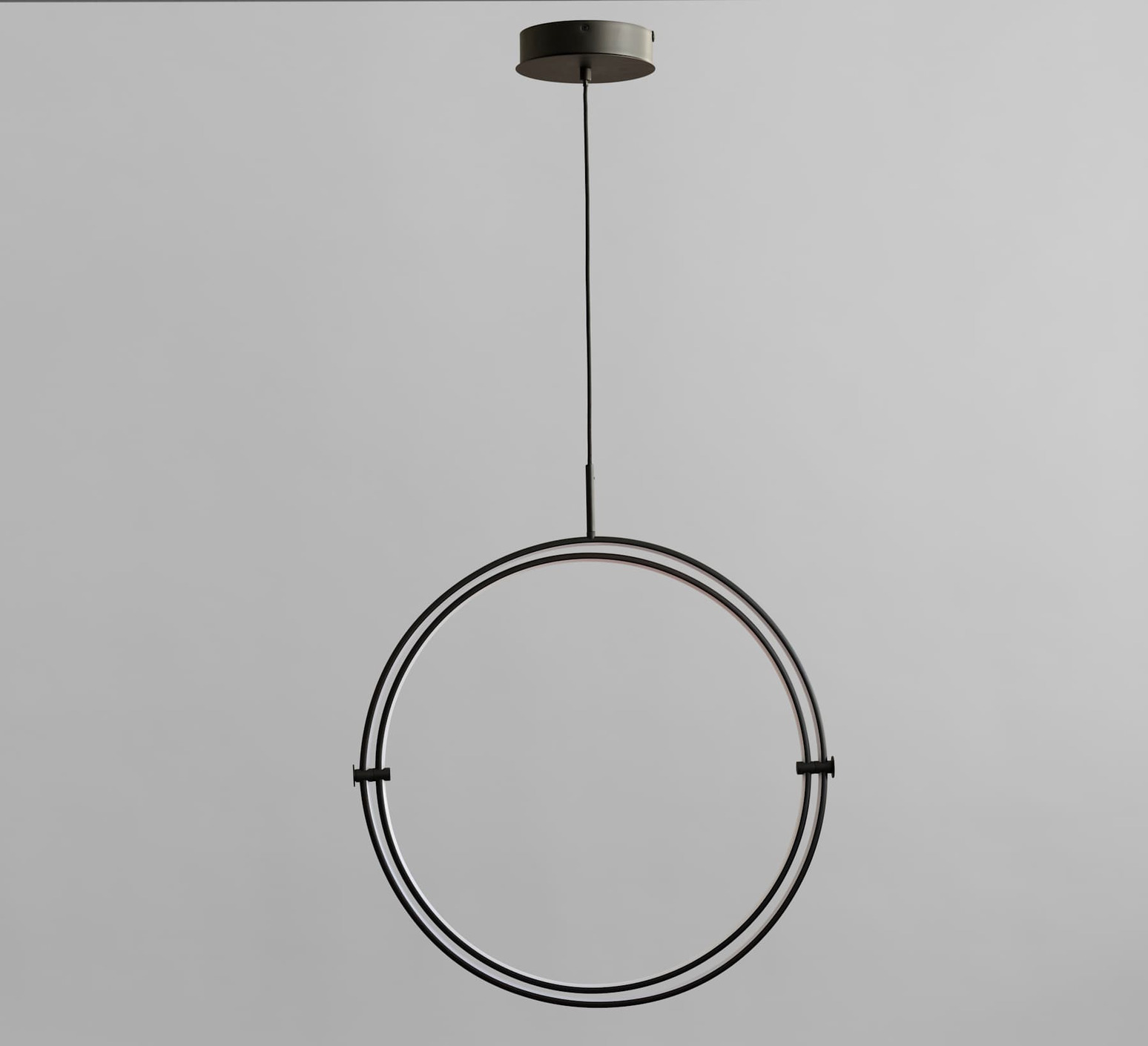 Maru Ø60 se compose de deux cercles en aluminium méticuleusement travaillés, chacun équipé d’une ampoule LED intégrée qui illumine l’intérieur du cercle. Une articulation mobile de chaque côté permet au cercle intérieur de tourner à l’intérieur du cercle extérieur, offrant ainsi une flexibilité et des compositions modulables. Ces suspensions peuvent être utilisées individuellement comme pièces sculpturales, ou regroupées pour créer un éclairage dynamique et ludique. La simplicité circulaire et la finition noir brûlé apportent chaleur et élégance à tout espace, tout en renforçant la modernité et la polyvalence du design.