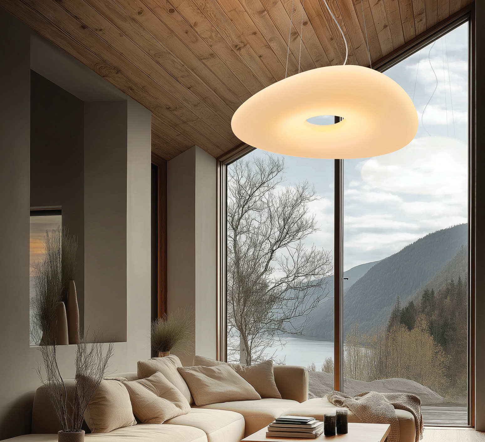 Ce luminaire décoratif pour intérieur traduit une approche graphique du volume lumineux et s’impose comme une pièce centrale dans l’aménagement.