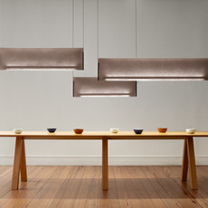 Pensée comme un luminaire décoratif pour l’intérieur, elle adopte une écriture graphique et une forme longiligne, destinée aux espaces architecturés.