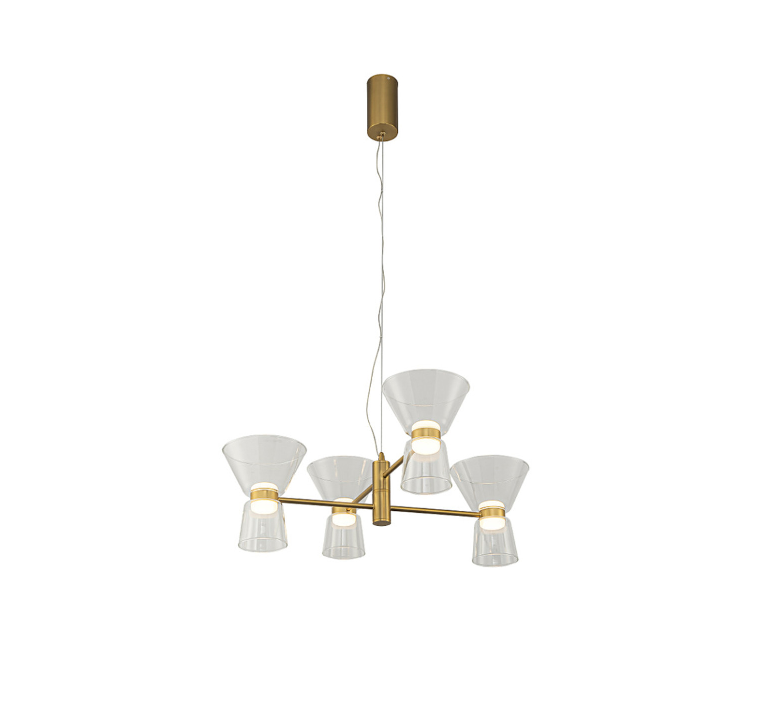 Suspension, New York , 4 têtes, transparent et or, LED, 3000K, 1850 lm, Ø68cm, H21,2cm - Mantra