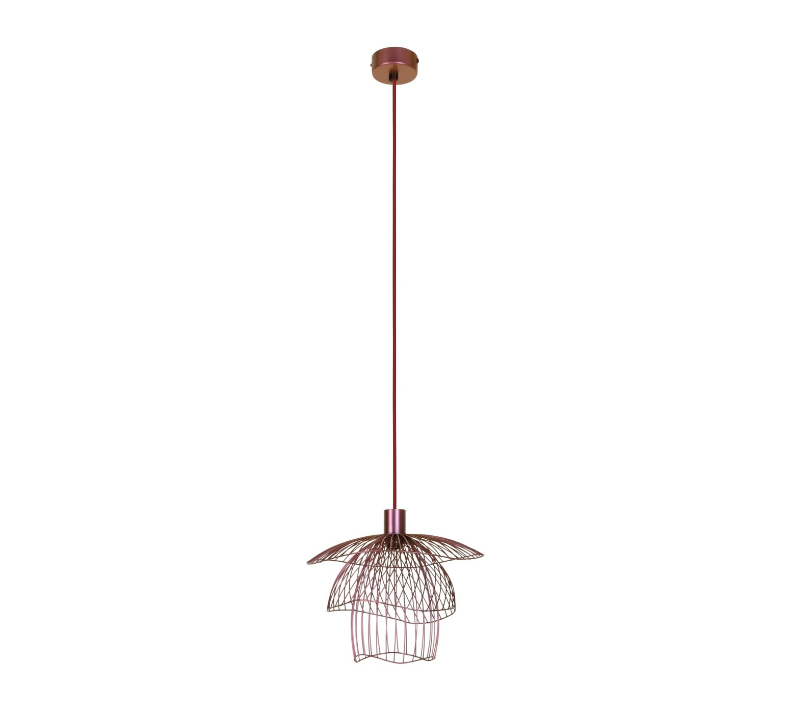 La suspension se caractérise par 3 abat-jour de fils de métal, superposés et de forme différente. Sa forme aérienne rappelle le battement des ailes d’un papillon... Ce design original et unique permet l'illusion du mouvement : l'objet est léger et donne l'impression de voler.