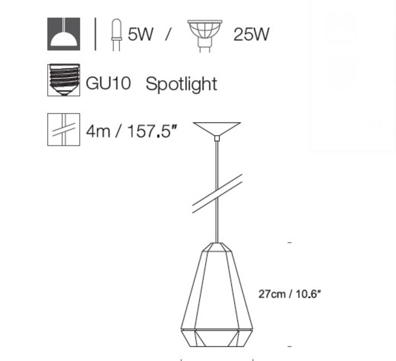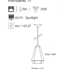 Portland est composée d'une rosace de plafond conique et d'un cordon d'alimentation formant élingue.