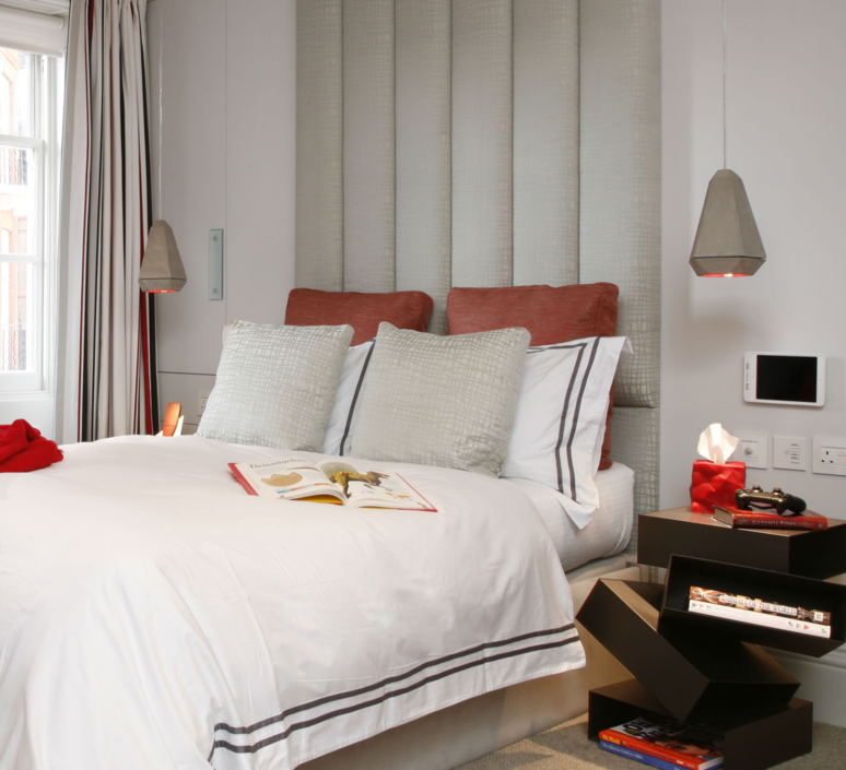 Très graphique, Portland est un mélange ingénieux de béton gris et d'intérieur laqué : blanc, rouge ou bleu des mers. Le contraste entre les deux matières détonne et apporte pourtant une lumière sophistiquée, agréable dans tous types d'intérieurs.