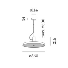 Roomor Office Cable 1.0 mesure 56 cm de diamètre et 21,6 cm de hauteur, avec un câble de suspension réglable jusqu’à 2,5m. Elle intègre une LED de 35 W offrant environ 3 660 lumens pour une lumière blanc chaud de 3000K. Driver inclus. Dimmable Dali-2.