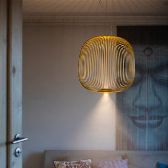 Le luminaire Spring est composé d’une rosace, d’un câble, d’un filin et d’un abat-jour fait à partir de lames en acier inoxydable, arrangés comme un fouet de cuisine autour d’un disque LED. La forme semi-transparente ainsi créée peut être ajustée pour créer divers silhouettes – d’un arrangement plat rappelant le dessin d’un spirographe à une forme plus pleine ressemblant à une citrouille, en passant par une configuration en soucoupe volante. Onirique et fascinante, la suspension Spring s’intègre à chaque intérieur, que ce soit dans une salle à manger, une pièce de vie ou une entrée.