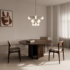 Associant le métal et le verre, la suspension adopte des lignes épurées et essentielles. Son corps lumineux s’ouvre vers le bas pour accueillir un élément en verre, semblable à une goutte d’eau qui glisse naturellement le long de sa structure. Cette esthétique, inspirée de la fluidité de l’eau, confère au luminaire une présence à la fois éthérée et intense. Idéale pour un espace de réception, un salon ou une salle à manger, elle diffuse une lumière enveloppante qui apporte caractère et raffinement à tout intérieur.