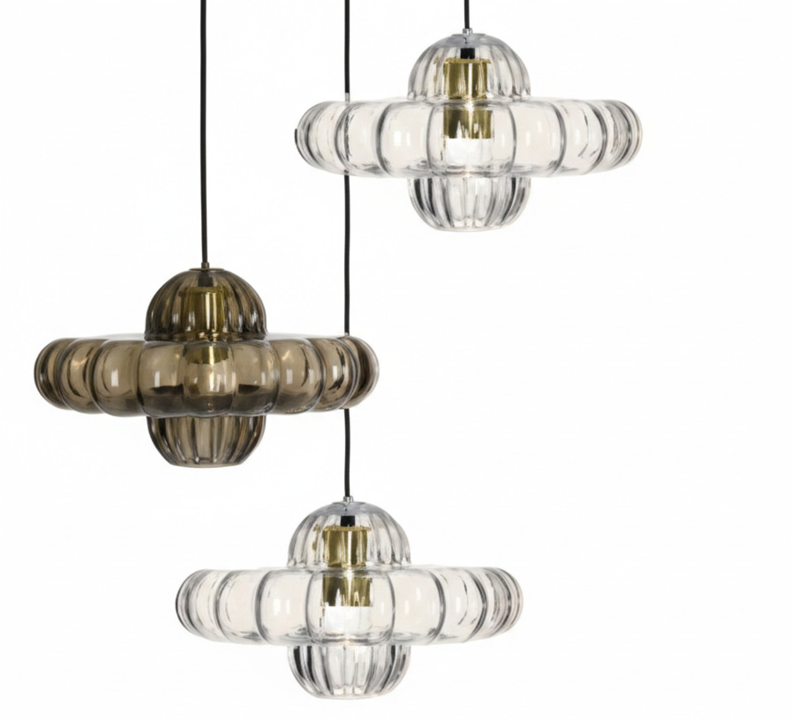 Suspension, Toupi Trio, transparent cristallin & gris bronzé, Ø30cm, H17 cm - Margaux Keller Collections