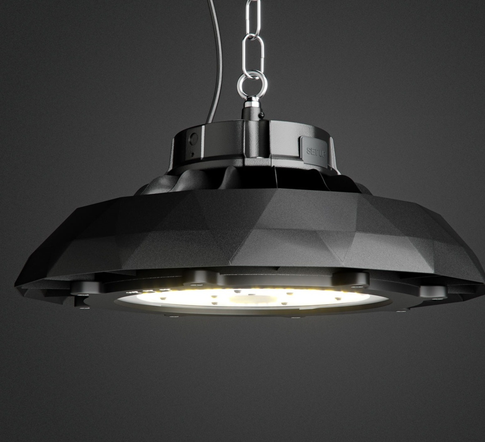La suspension UFO Lens Switch est une hotte LED industrielle de la marque Beneito Faure, pensée pour éclairer avec efficacité des espaces de grande hauteur.