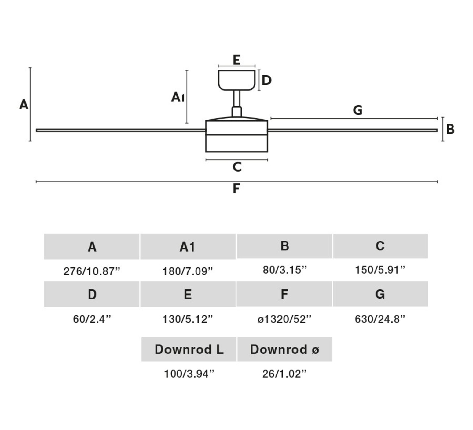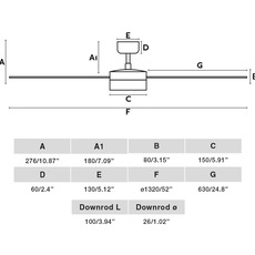 La fixation du ventilateur au plafond est sur rotule. Le ventilateur Cruiser L, mesure Ø132cm de diamètre et 27,6cm de hauteur. La source lumineuse est incluse.