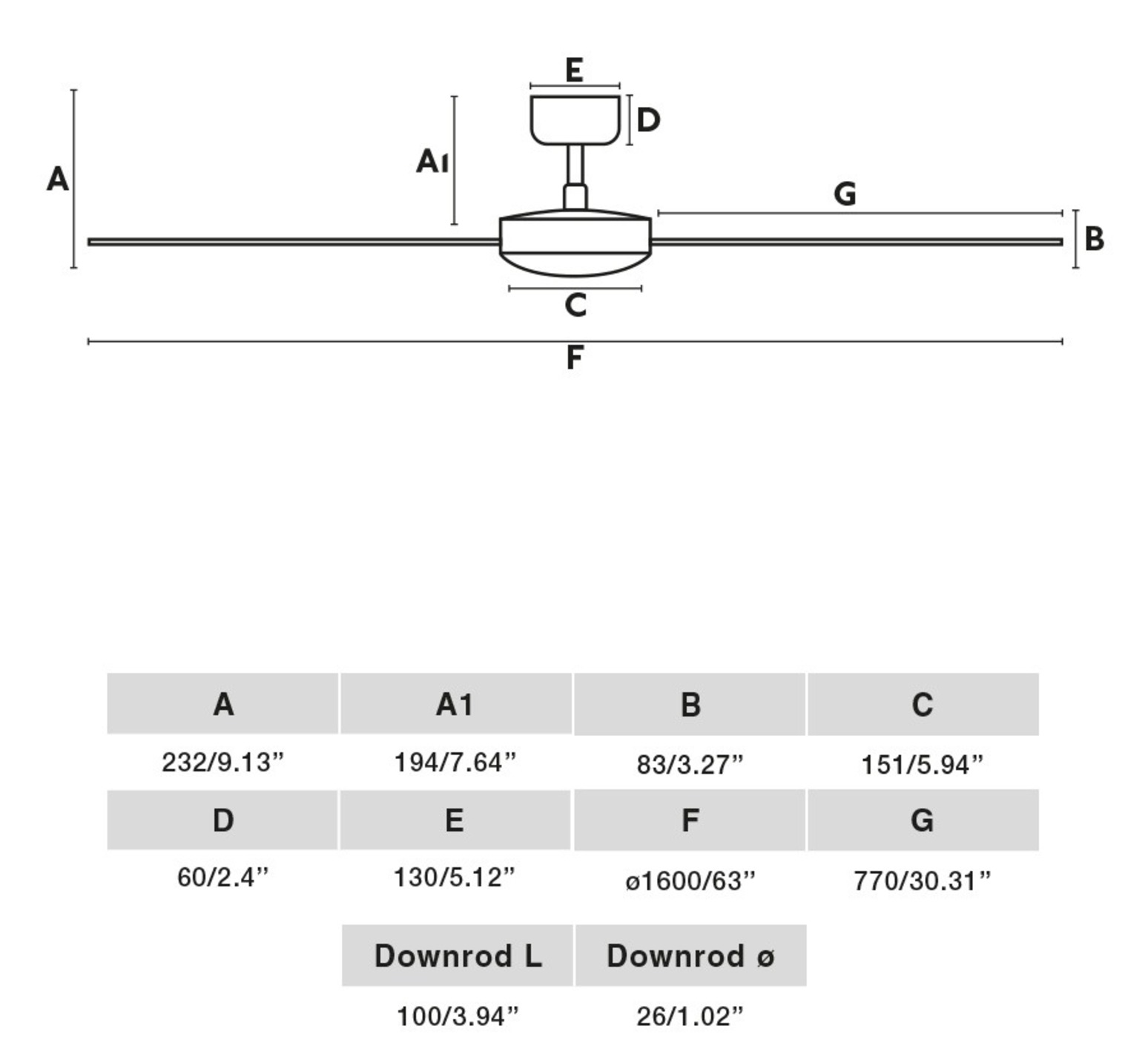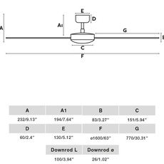 La fixation du ventilateur au plafond est sur rotule. Le ventilateur Cruiser XL mesure Ø160cm de diamètre et 27,6cm de hauteur.