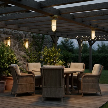 Plafonnier, Lampiok 1 n°2, laiton vernis, IP65, Ø22,4cm, H59,2cm - ...