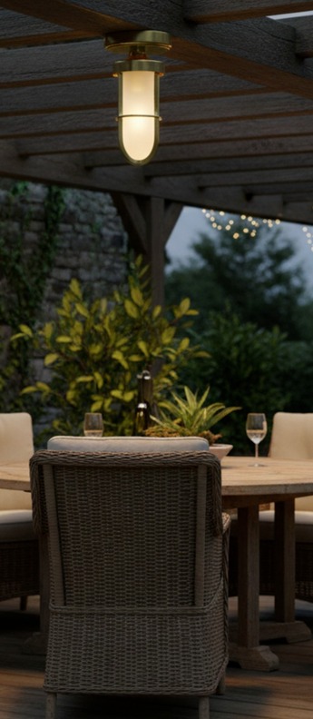 Plafonnier, Oregon , laiton naturel et verre givré, IP65, Ø12cm, H2...